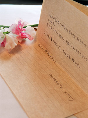 親にあてた手紙を読み上げました。